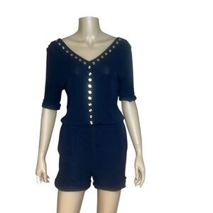 This Kova & T women’s romper is a stylish and versatile piece designed for effortless wear. Sz 4. Made from a blend of 95% viscose and 5% spandex, it offers a soft and stretchy feel in dark teal blue color.