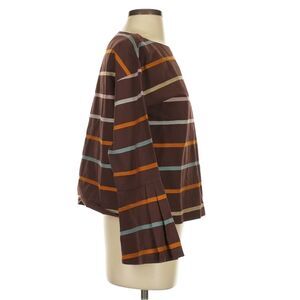 Kowtow Nelken Top 100% Organic Cotton 3/4 Bell Sleeve Brown Landscape Stripe Sm