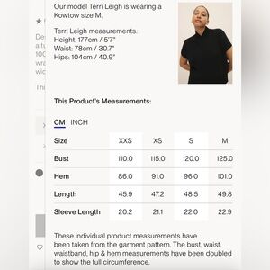 @monicacbravo I just added photos of the measurement chart. This garment is 43.3 inch bust, 33.9 inch hem, 18.1 inch length.