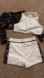 Stylish rumor outfit with a black sequin top and white skirt. Features colorful sequins and gold accents. Will send immediately so you can get it before Halloween. 130 top/130 jacket/140 shorts