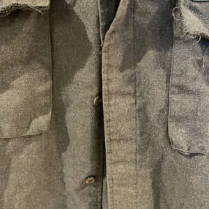 KR3W men’s dark gray jacket. It is in really good donation. It has some fraying at the sleeves, please see pictures for details.