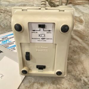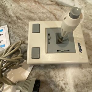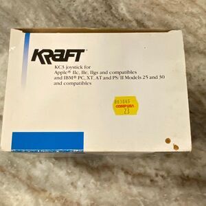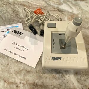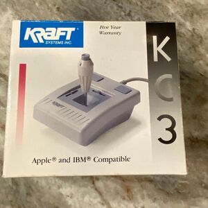 This is a Kraft KC3 Precision Joystick that is compatible with Apple and PC computers. It comes in its original box with instructions and a catalog included. The joystick is wired and made of plastic. Date on box is 1990. Please see all photos for details.