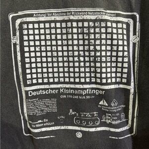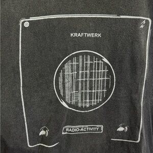 Gray graphic t-shirt featuring Kraftwerk Radio-Activity design. Casual and stylish.