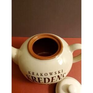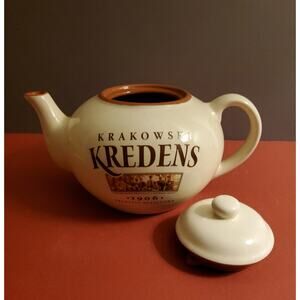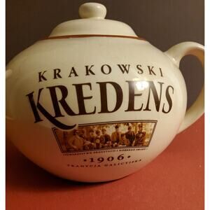 Bring a touch of vintage traditional Polish charm to your kitchen with this Krakowski Kredens ceramic teapot. Featuring the bold Krakowski Kredens logo with 1906 Tradycja Galicyjska and a photograph, this teapot celebrates the traditions of Krakow's famous delicatessen brand.