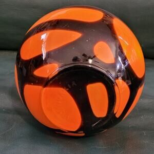 Step into Deco glamour with this vivid orange Kralik “Tango” vase, a swirl of art and energy. The dramatic black web pattern catches light like liquid lace, giving any room a burst of vintage confidence. Each curve feels like a love letter to mid-century artistry—perfect for chic spaces, eclectic shelves, or retro-modern homes where style tells a story. Signed and beautifully timeless.