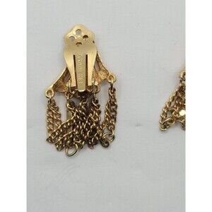 This vintage Kramer clip-on bell with dangles earrings is a great addition to your collectibles. The bell produces a clear chime and the earrings add a touch of elegance to your outfit. It is perfect for those who appreciate unique and decorative items. The bell is made of high-quality materials and is designed to last for years. It is a great gift for collectors and those who appreciate vintage items.
