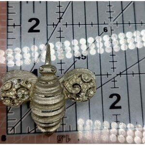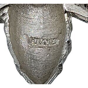 Add a touch of whimsy to your outfit with this vintage Kramer Rhinestone Bumble Bee Brooch. Crafted in silver tone with sparkling rhinestones, this rare and signed piece is perfect for collectors and fashion enthusiasts alike.