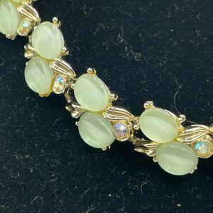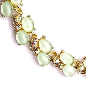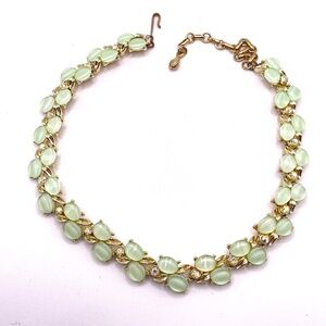 Kramer Signed Vintage Gold Tone Mint Green Thermoset Choker Necklace