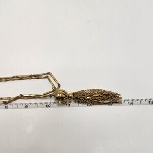 Kramer Sphere Pendant Tassel Double Strand Chain Necklace Gold Tone Vintage