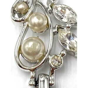 Kramer of NY Bracelet Vintage Silver Tone Faux Pearls Rhinestones 6.5”