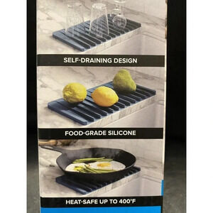 Kraus Kitchen Self Draining Silicone Drying Mat Cyan Blue Brand New - Measurements- 14-3/4 x 8-1/8 x 1/2.