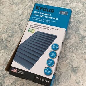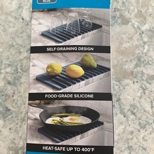 Krause self draining silicone drying mat NWT in box Size is 14L 8W 1/2H Color is Cyan Blue Lowe’s exclusive product