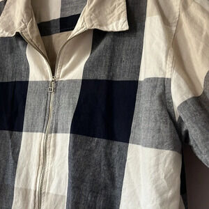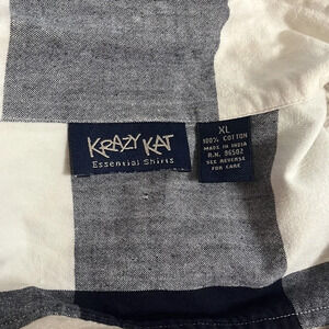 Krazy Kat Essential Shirt Long Sleeve Tan and Navy Blue Zippered Top Size XL
