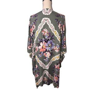 Krazy Kat Kimono Size XL Open Cardigan Rayon Floral Swim Cover Open Cardigan Wrap Beach Festival Boho Cottage