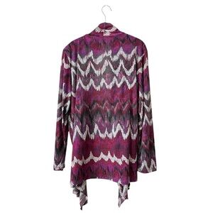 Krazy Kat Open Cardigan Sweater Women's Size XL Purple Print Long Sleeve Draped