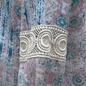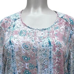 Krazy Kat Tunic Blouse Women's Large Pastel Floral Crochet Lace Trim 3/4 Sleeve