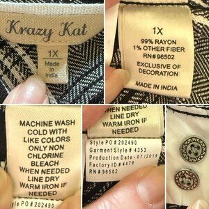 Krazy Kat Womens Black/White Plaid Button-Up Shirt Size 1X Long Sleeve Collar