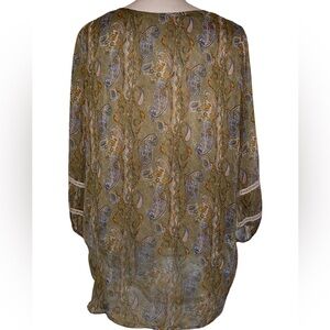 Krazy Kat Women’s Boho Inspired Blouse with Crochet Details in Olive Green SZ XL