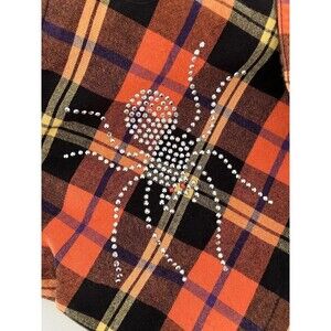 Krazy Kat XL Woman's Halloween Fall Plaid Rhinestone Spider Long Sleeve Shirt