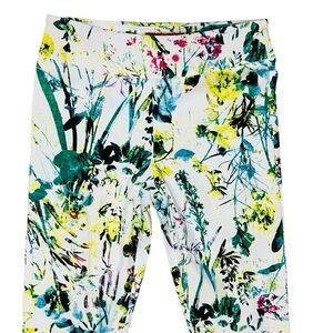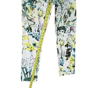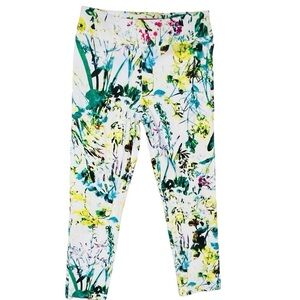 Krazy Larry Made/USA Pants white/Multicolor Leaves Print Stretch Pull On 2 NWOT