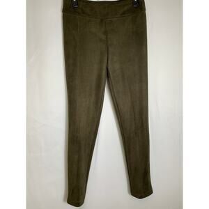 Krazy Larry Olive Green Faux Suede Leggings Sz 4. Flat front, pull-on leggings made of very soft faux suede. Skinny leg 31" inseam. Great condition.