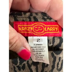 Krazy Larry size 2 animal print pull on pants in excellent condition. No signs of wear. Waist is 13” across. Inseam is 28” and rise is 9”.