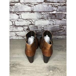 Selling Krbonell Anthropologie Brown Leather Double Sided Zipper Ankle Heeled Booties Boots Women Sz 9M US/39.5-40EU