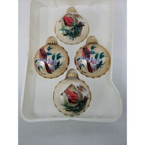 The set includes four vintage ornaments with a bird subject, perfect for animal lovers and collectors alike. Two of each design. Hang them on your tree or display them throughout the year for a touch of whimsy. These ornaments are sure to impress and make a great gift for any occasion. Pre-owned. Ornaments in excellent condition. See photos.