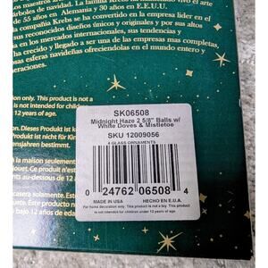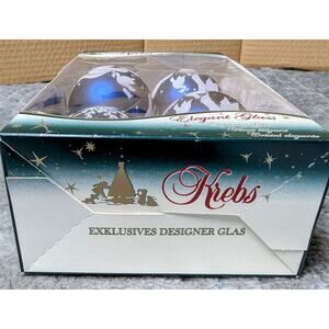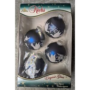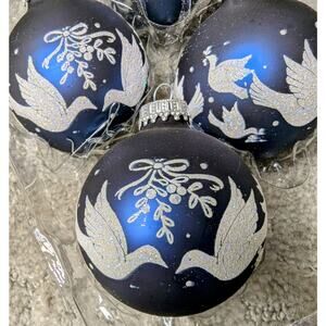 Krebs Elegant Glass Christmas Ornaments MIDNIGHT HAZE 2 5/8" BALLS white doves