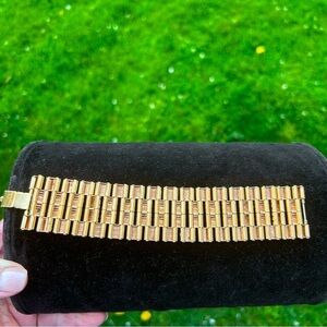 Kreisler Gold Wide Interlocking Link Ribbed Bracelet