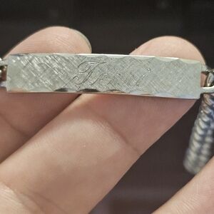 Kreisler USA Rhodium Electroplated "TERRI" Personalized Monogram Bracelet Cuban Chain 7 inches