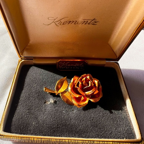 Krementz Brooch rose gold 14k overlay Carved in box Vintage