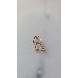 This is a vintage Krementz gold tone metal double heart shaped brooch with a clear rhinestone.