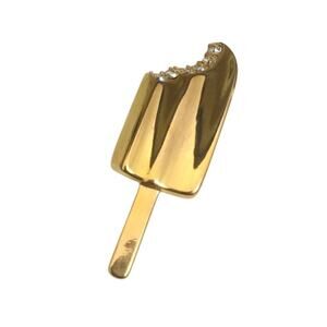 Krementz Signed Gold Tone Rhinestone "Just One Bite Off The Popsicle" Brooch Pin