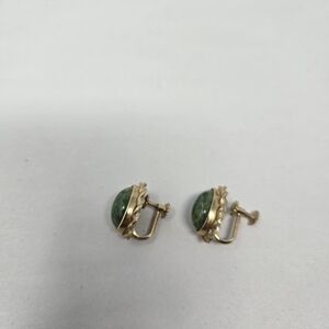 Krementz Womens Vtg Jade Stone Pendant & Screw Earrings Set Gold Tone Timeless