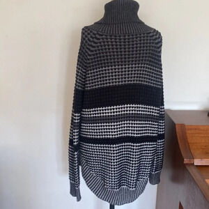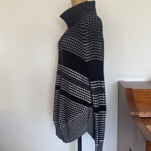 Krimson Klover sweater sz M black and grey stripe merino blend turtleneck EUC