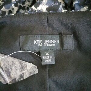 Kris Jenner Womens Black White 3/4 Sleeve Sequin Tunic Top Plus Size 1X