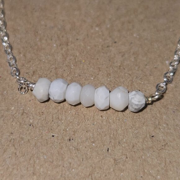 TAGS: kris nations necklace, howlite beaded necklace, silver-tone choker, minimalist jewelry, boho style necklace, layering necklace, dainty bar necklace, stackable jewelry, light neutral jewelry, giftable jewelry