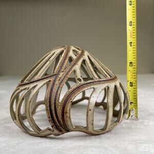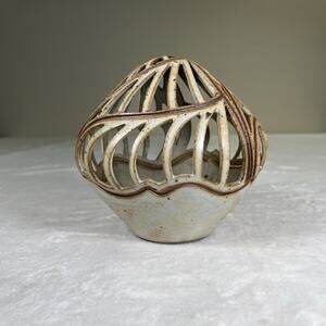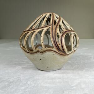 Kris Pixton 6” Studio Art Pottery Luminary Abstract Carved NY Votive Charity