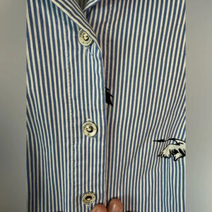 Kris & Tina Button Down T-Shirt Blue Pin Stripe Mesh Coastal Dress Size Small