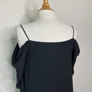 Great go to piece by Krisa. Black tunic length top with a cold shoulder detail. Lined. Great closet staple! PLEASE NOTE: Fabric tag has been removed but feels like polyester. All measurements are approximate and taken flat.