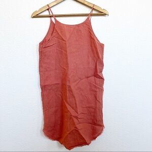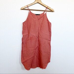 Krisa- Frayed Hem Mini Linen Dress In Sunset- XS