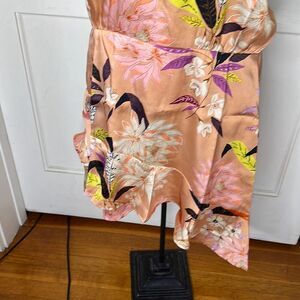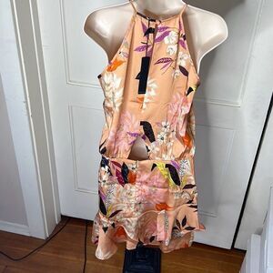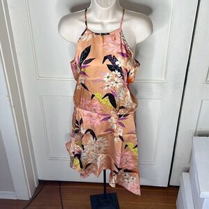 Krisa High Low Halter Mini Dress in Camellia Peach Floral Nwt Size Large