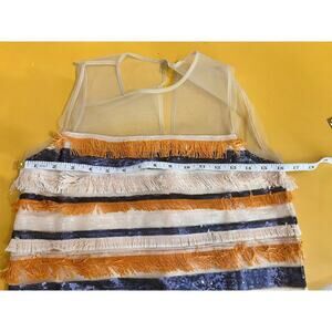 Krisa Sequin Fringed Striped Havana Sleeveless Tank Mini Dress Size XS NWT