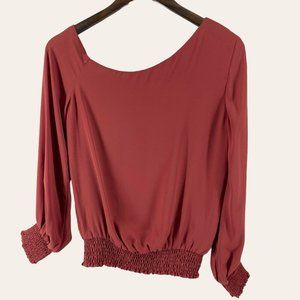 Krisa Rust Red Long Sleeve Smock Waist Top