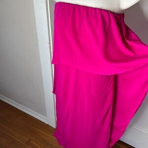 Krisa Strapless Ruffle Layer Dress Cape Back in Jazz Fuschia NWT Size Medium