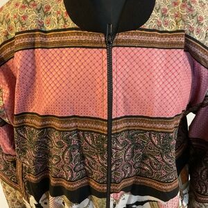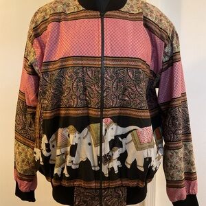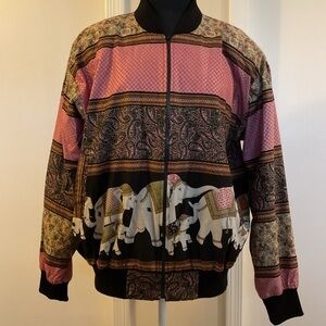 Unique vintage 90s Indian elephant bomber jacket in pink and black, featuring a boho western style jacket #elephantprint