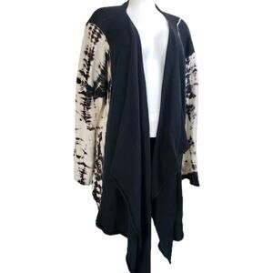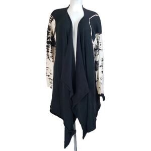 Krista Larson Black & White Hand Dyes Open Cardigan Loose Knit. OS. Asymmetrical
