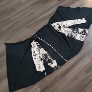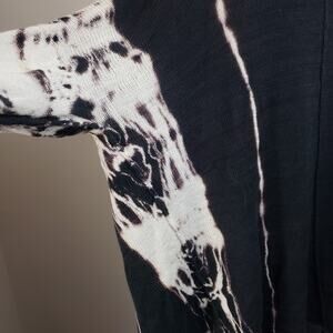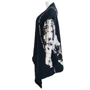 Krista Larson Black & White Hand Dyes Open Cardigan Loose Weave Knit. One Size. Asymmetrical with one front panel hanging longer than the other.