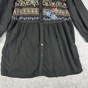 Krista Lee Tunic Top Womens M Beaded Embroidered Button LS Rayon Boho Peasant